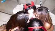 Mei Cornejo & Lizzy Laynez in wild Halloween cosplay with a huge dildo and a huge cock