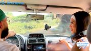 Young Colombian goes out exercising and ends up in her neighbor's car taking his cum!